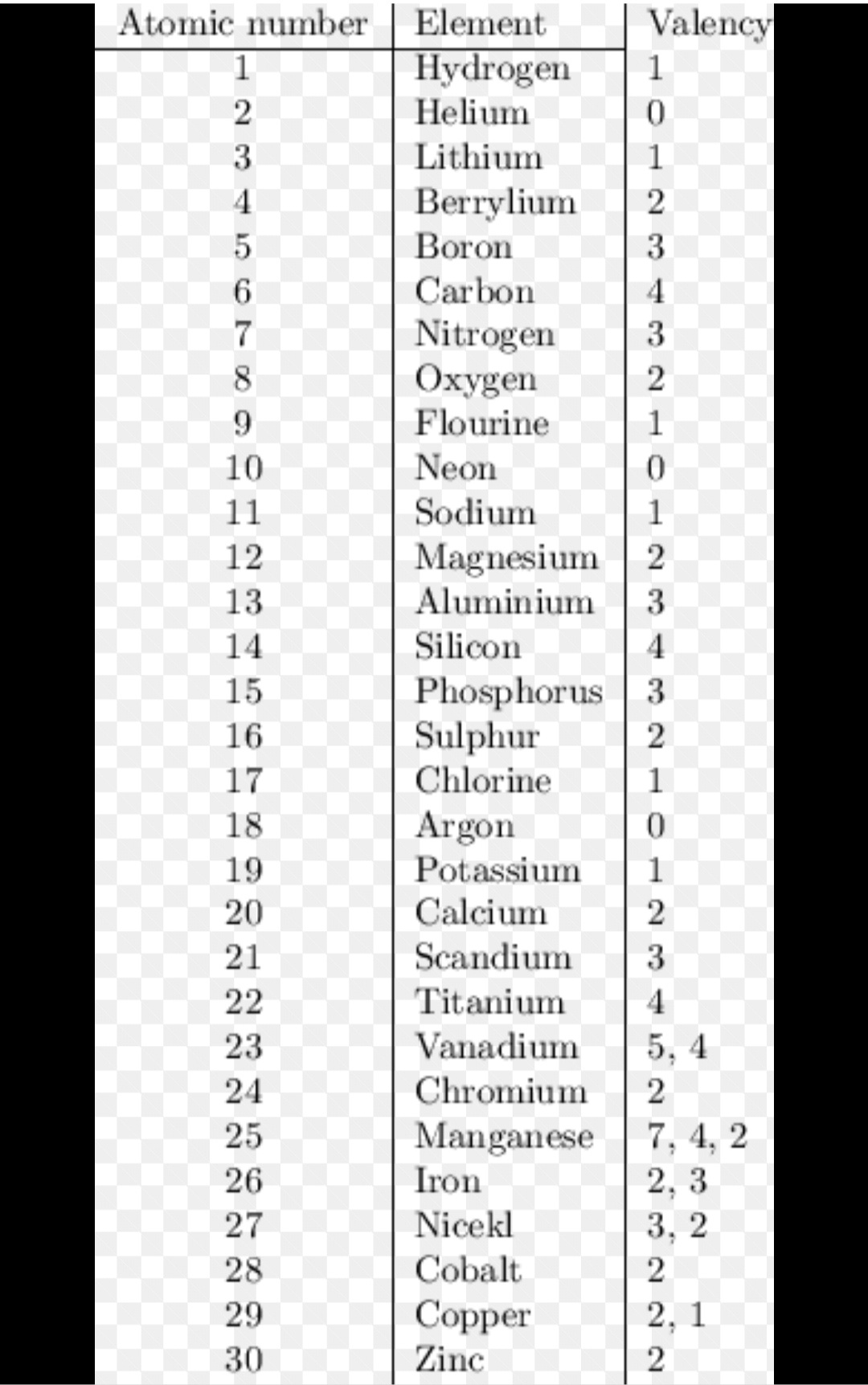 Nejlepší Atomic Number Atomic Mass And Its Valency Of First 30 Element